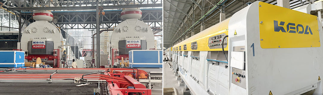 該整線項(xiàng)目包含科達(dá)原料整廠設(shè)備,2臺(tái)KD8518壓機(jī)、五層干燥器、施釉線、高效節(jié)能寬體窯以及數(shù)控智能拋光線、智能儲(chǔ)運(yùn)系統(tǒng)、大板快速包裝線等窯后智能整線設(shè)備,可生產(chǎn)600×600(mm)、800×800(mm)常規(guī)規(guī)格拋釉磚以及750×1500(mm)、800×1600(mm)等規(guī)格的高品質(zhì)大板產(chǎn)品,助力鉑金企業(yè)進(jìn)一步鞏固其市場(chǎng)競(jìng)爭(zhēng)力。