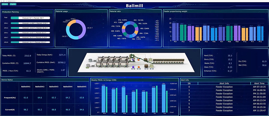 這套系統(tǒng)融入了瓷磚生產(chǎn)全流程,包括預(yù)破碎、化漿球、連續(xù)球、制粉、壓制成型、干燥、燒成等,能實(shí)現(xiàn)整線監(jiān)控、數(shù)據(jù)采集、數(shù)據(jù)存儲(chǔ)及數(shù)據(jù)處理。通過(guò)海量數(shù)據(jù)分析和云計(jì)算,力泰Ceraworks 4.0將陶瓷廠過(guò)去的定性描述、經(jīng)驗(yàn)管理將逐步轉(zhuǎn)變?yōu)閿?shù)據(jù)管理、數(shù)據(jù)指導(dǎo)生產(chǎn),為陶瓷廠數(shù)智化升級(jí)注入新活力。