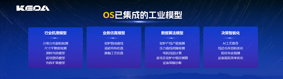 陶瓷制造云平臺不僅是科達甄陶MOM等一系列數字化系統(tǒng)的運行后臺,更是一個匯聚行業(yè)智慧的“工業(yè)模型集散地”。該平臺已集成了原料均質模型、施釉工藝仿真、磚坯窯爐縮徑測算、分級分色缺陷檢測、線邊倉庫周轉優(yōu)化等20多種經過驗證的工業(yè)模型。