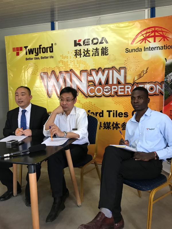 為配合“一帶一路”國際合作高峰論壇進行宣傳,央視主流媒體考察采訪響應“一帶一路”國家發展戰略的優秀企業海外基地。肯尼亞作為“一帶一路”非洲重要支點,5月12日,中國駐肯尼亞大使館相關領導、中國央媒及肯尼亞知名媒體一行圍繞這一議題參觀考察了科達潔能與廣州森大合資建設的肯尼亞特福陶瓷廠。科達潔能副總裁鐘應洲、特福陶瓷總經理李瑞欽會見了代表團一行。