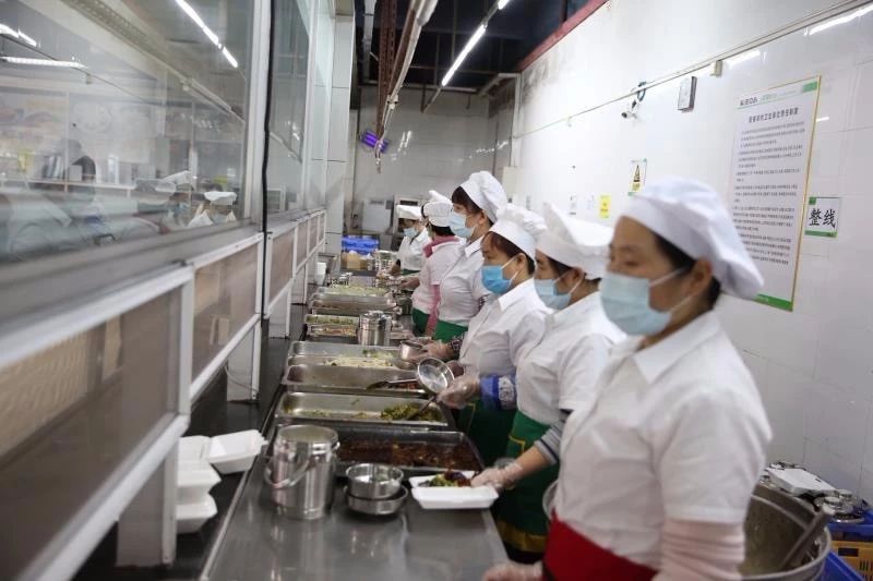 中午時分,為了錯峰用餐,緩解就餐壓力,避免交叉感染,科達潔能食堂分餐制調整為“打包分餐制、打包配餐制、食堂用餐輪流制”,辦公室管理人員自帶餐盒到辦公室就餐,各個車間輪流安排員工到食堂就餐。在食堂就餐的員工在餐廳內排成一列,避免面對面用餐。復工首日,科達的義工隊和黨員爭當志愿者,到車間協助分餐分飯,緩解就餐壓力。