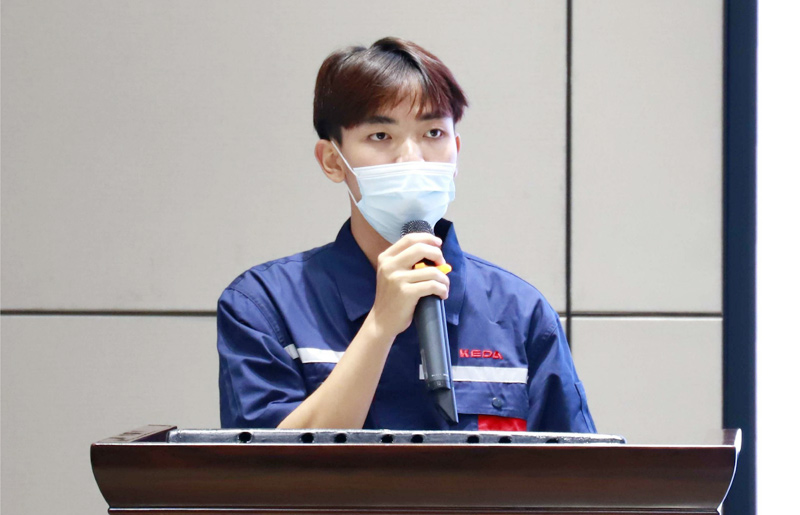 2021級機械設計1班陳國臨作為學員代表發言,他表示將以科達這個優秀的平臺為發展起點,永葆奮斗之心、錘煉過硬本領,力爭向上、追逐夢想,一步步實現人生目標。