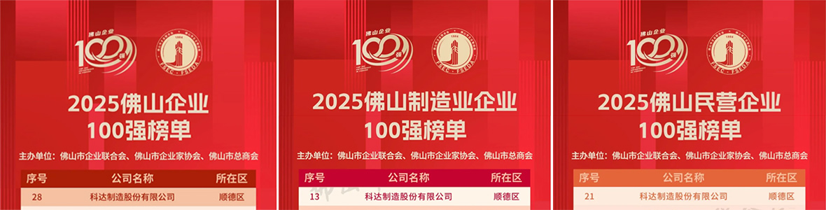 科達制造第七度入圍“佛山企業100強”榜單,排名大幅躍升,從2024年的第39位躍至第28位。同時,科達制造還上榜“制造業企業100強”、“民營企業100強”、“國際化TOP30”、“利稅貢獻TOP30”、“科技創新TOP30”的全部榜單。其中,在“民營企業100強”中排名第21位,“制造業企業100強”中位列第13位,排名均顯著提升,“國際化TOP30”“利稅貢獻TOP30”“科技創新TOP30”分別位列第7、13、22名。
