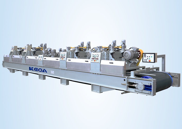 采用高速旋轉(zhuǎn)的金剛石滾筒對(duì)瓷質(zhì)磚表面進(jìn)行定厚銑刮加工,使瓷質(zhì)磚得到一個(gè)厚度一致的相對(duì)平整的表面,從而大大提高拋光磚生產(chǎn)線整線的產(chǎn)量,降低瓷質(zhì)磚拋光成本。