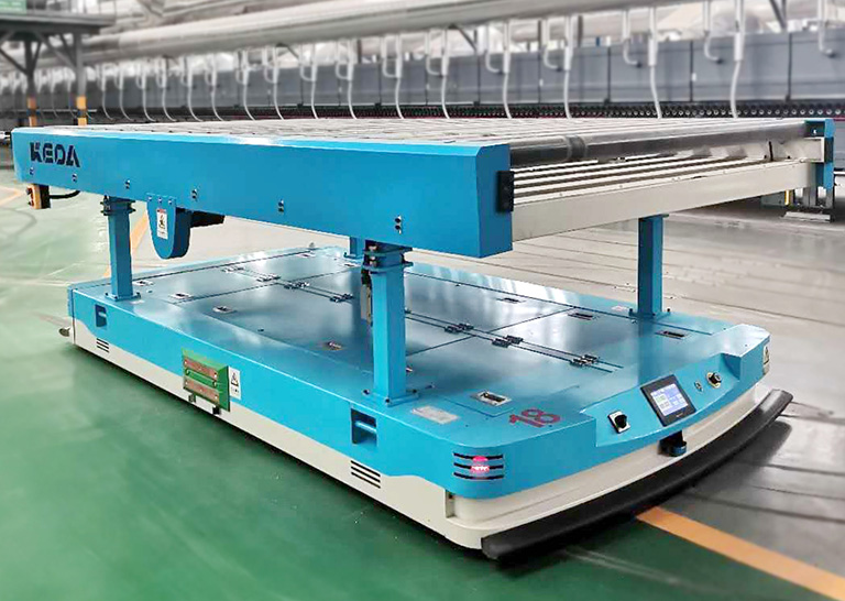 采用雙向輥臺AGV對發泡磚窯具進行回收輸送,全過程自動化,柔性化。