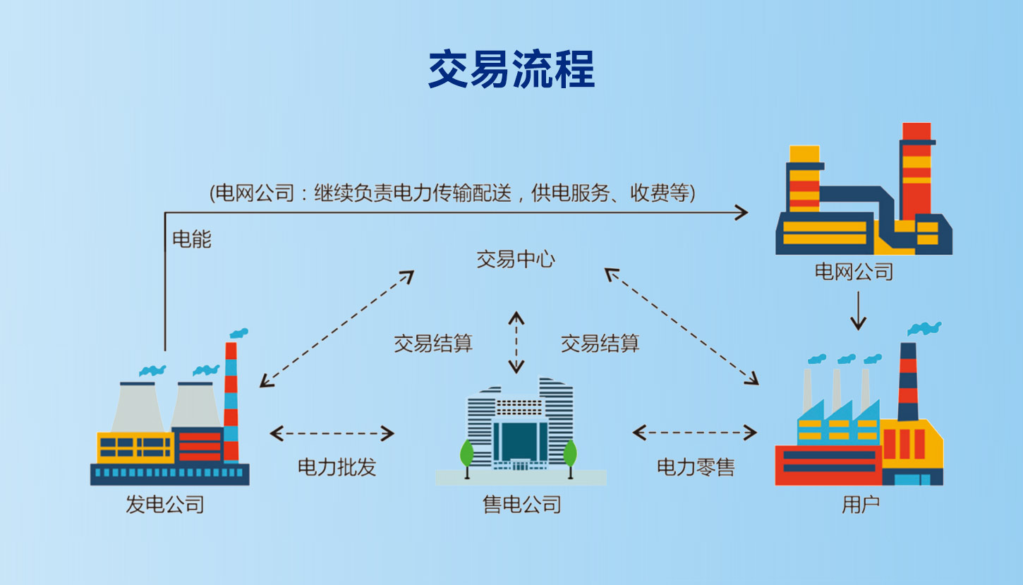 售電公司代理廣大中小電力用戶與發電企業之間通過市場化方式進行交易。通過電力交易,發電企業獲得市場化發電權配額、售電公司獲得代理服務電費、電力用戶獲得電力優惠。