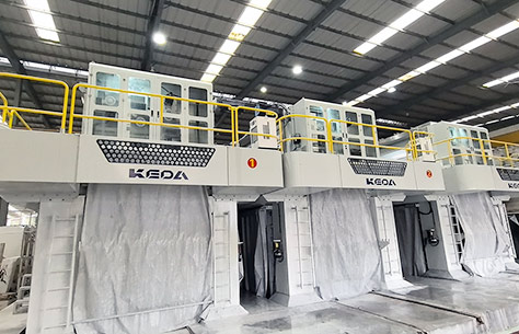 有機/無機人造崗石智能生產線主要由原料配料系統、荒料攪拌機、荒料壓機、真空系統、液壓系統、氣動系統、潤滑系統、冷卻系統、電控系統等組成。